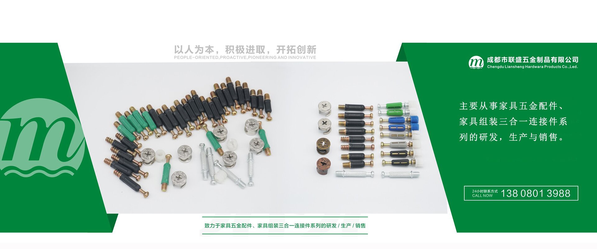 成都市聯盛五金制品有限公司成立于2012年,現擁有廠房面積16000平方米,主要從事家具五金配件、家具組裝三合一連接件系列的研發,生產與銷售。公司目前主營產品:家具組裝三合一包塑桿、定位桿、鐵桿、滾花鐵桿、雙頭桿、木牙螺絲、板托中軸、隔板釘等。